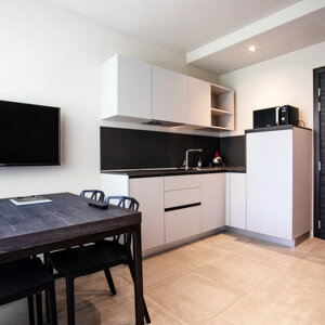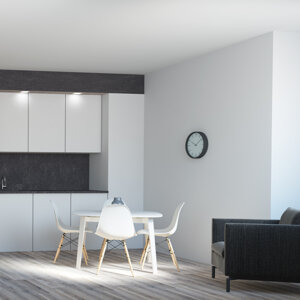 Lo stile è moderno ed essenziale, caratterizzato da contrasti cromatici e da punti luce.