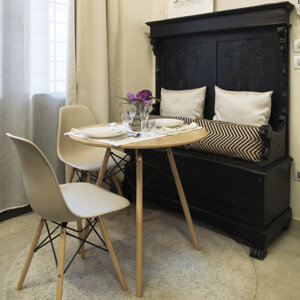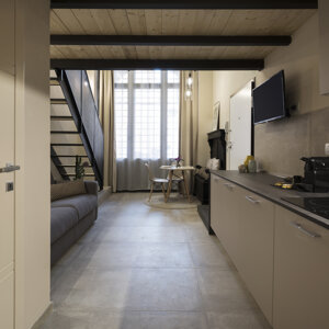 Dalla completa trasformazione di quella che era un'antica bottega bolognese, nasce uno splendido appartamento destinato ad accogliere un appartamento ad uso turistico, che si inserisce nel cuore della città, ci troviamo difatti in via De' Chiari a due passi da via Farini.