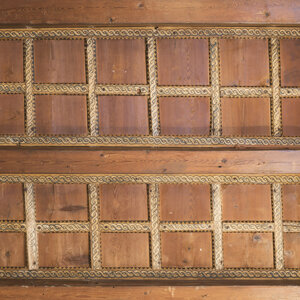 Lo stile moderno si accosta all'antico esaltandolo, le linee essenziali della composizione, dell'arrendamento e dei materiali si contrappongono al soffitto ligneo dipinto del 1300, rimasto celato per secoli da una controsoffittatura in arellato.