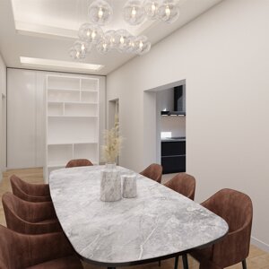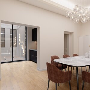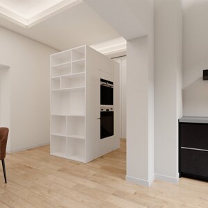 L'intervento prevede il cambio di destinazione d’uso da uffici ad abitativo e il frazionamento in quattro unità immobiliari indipendenti.